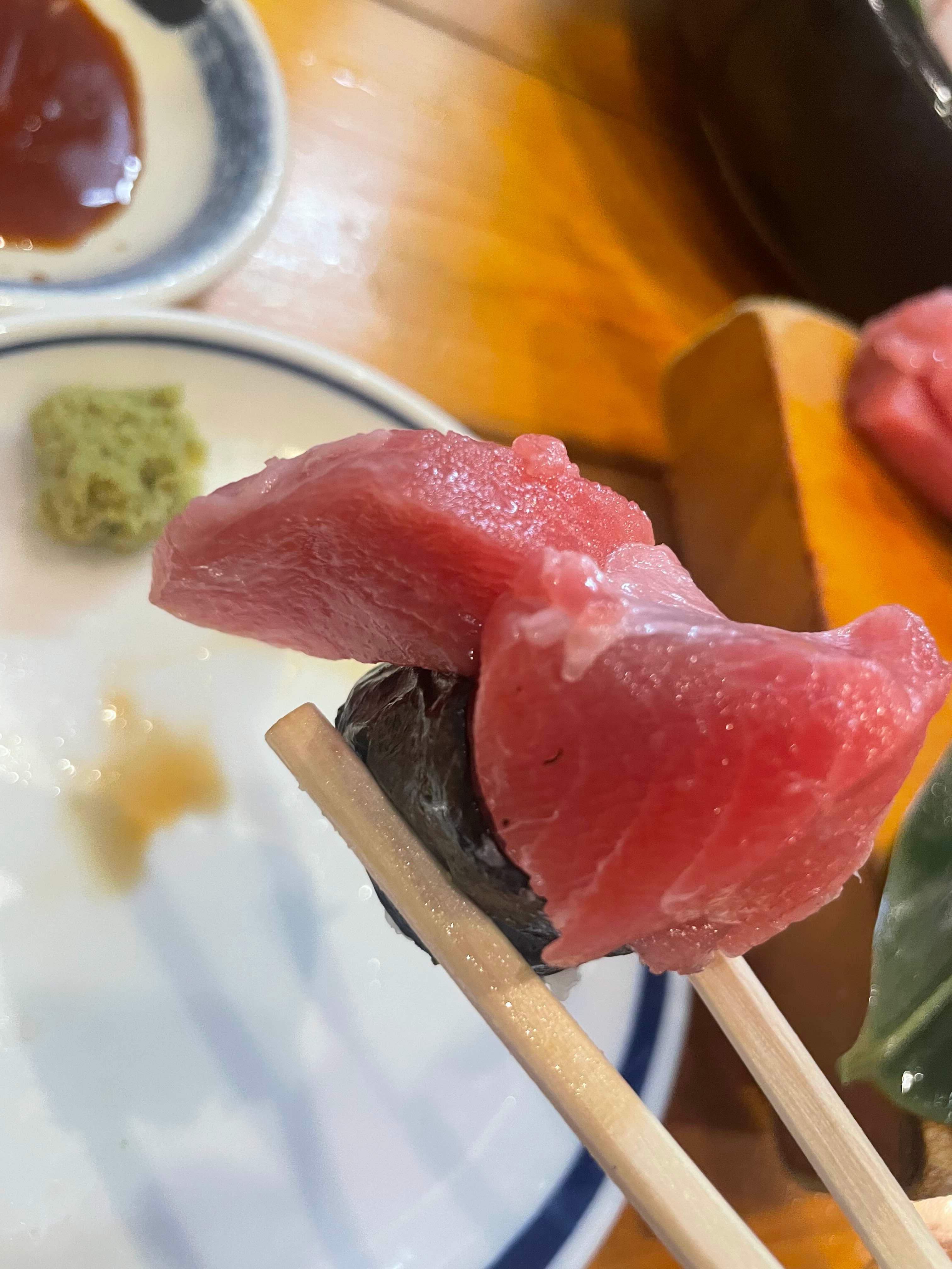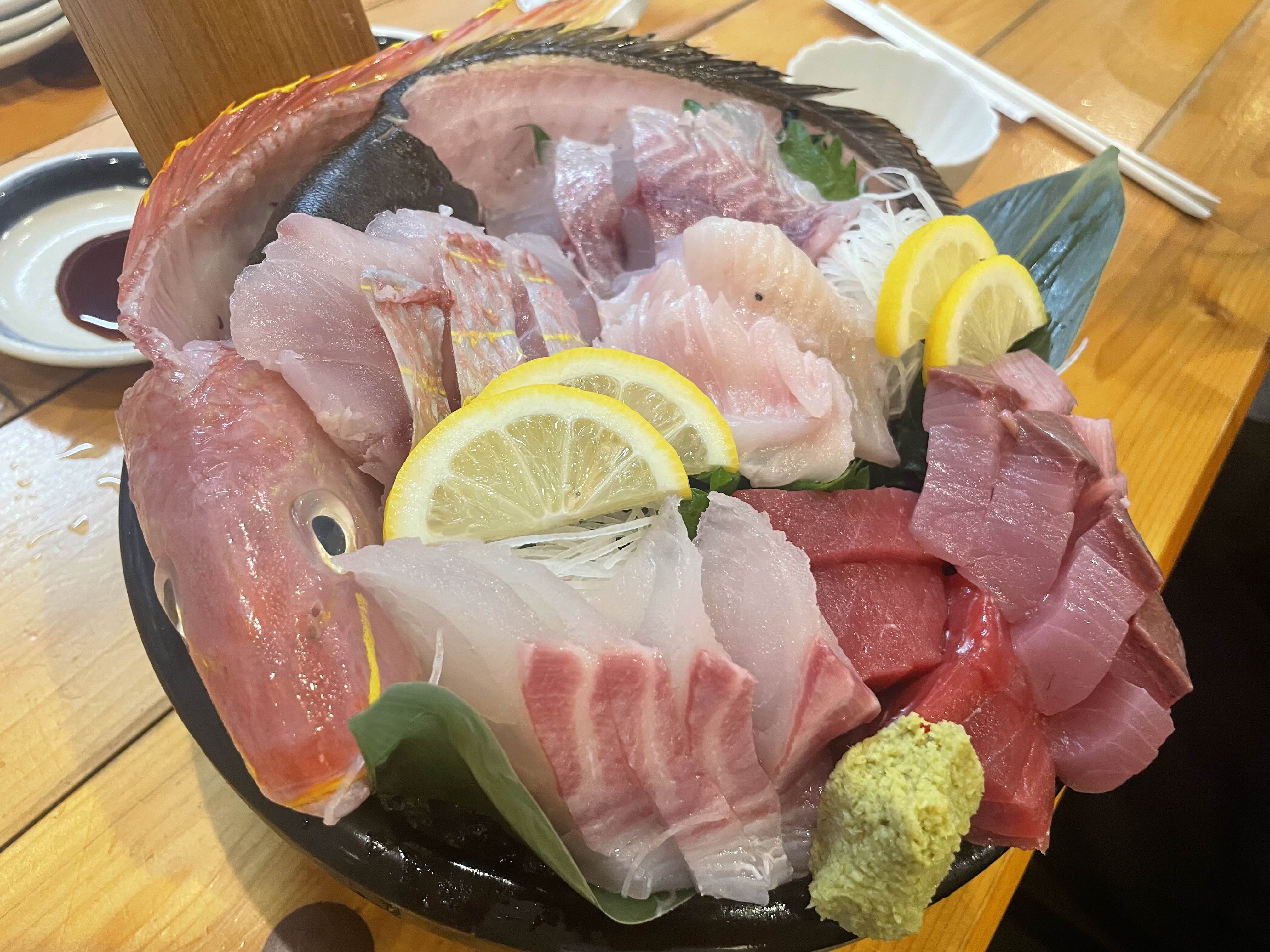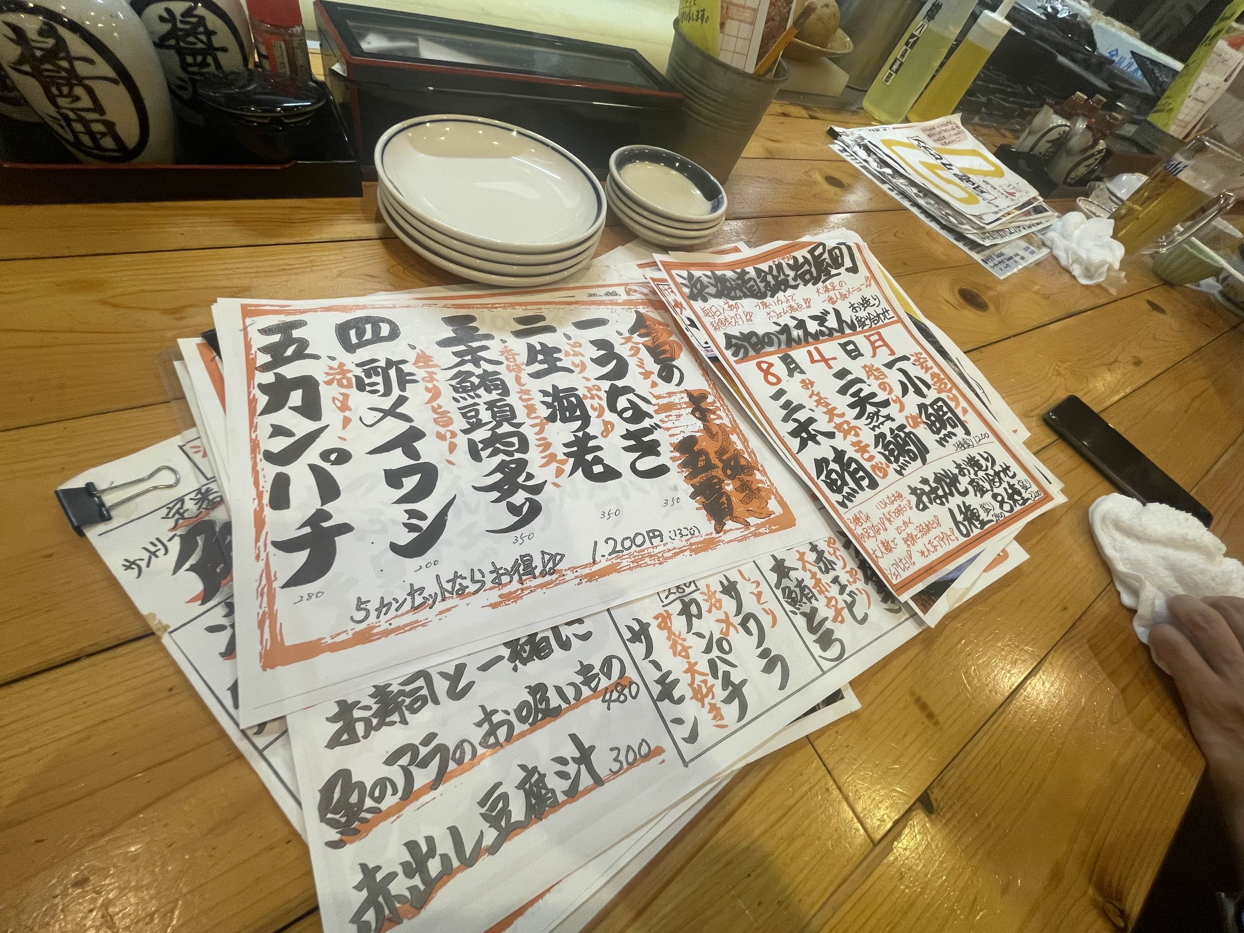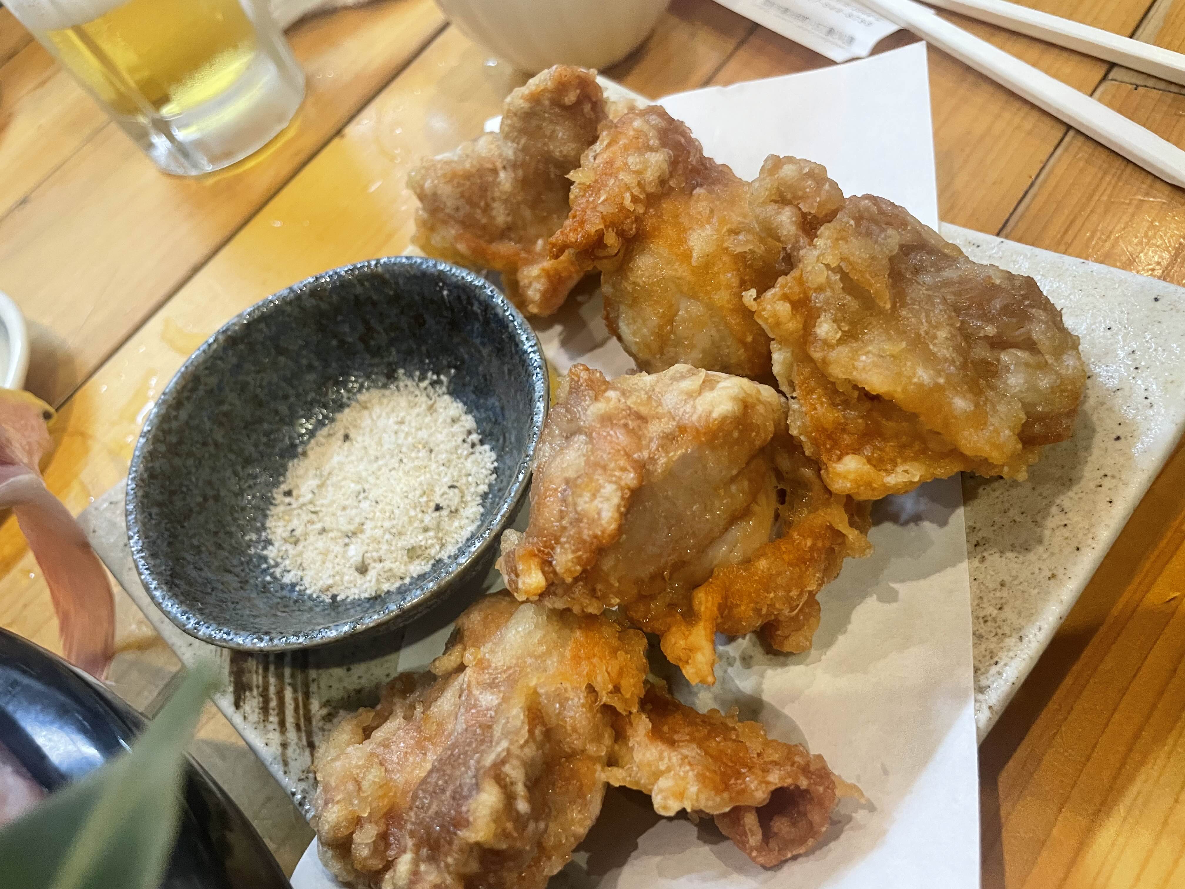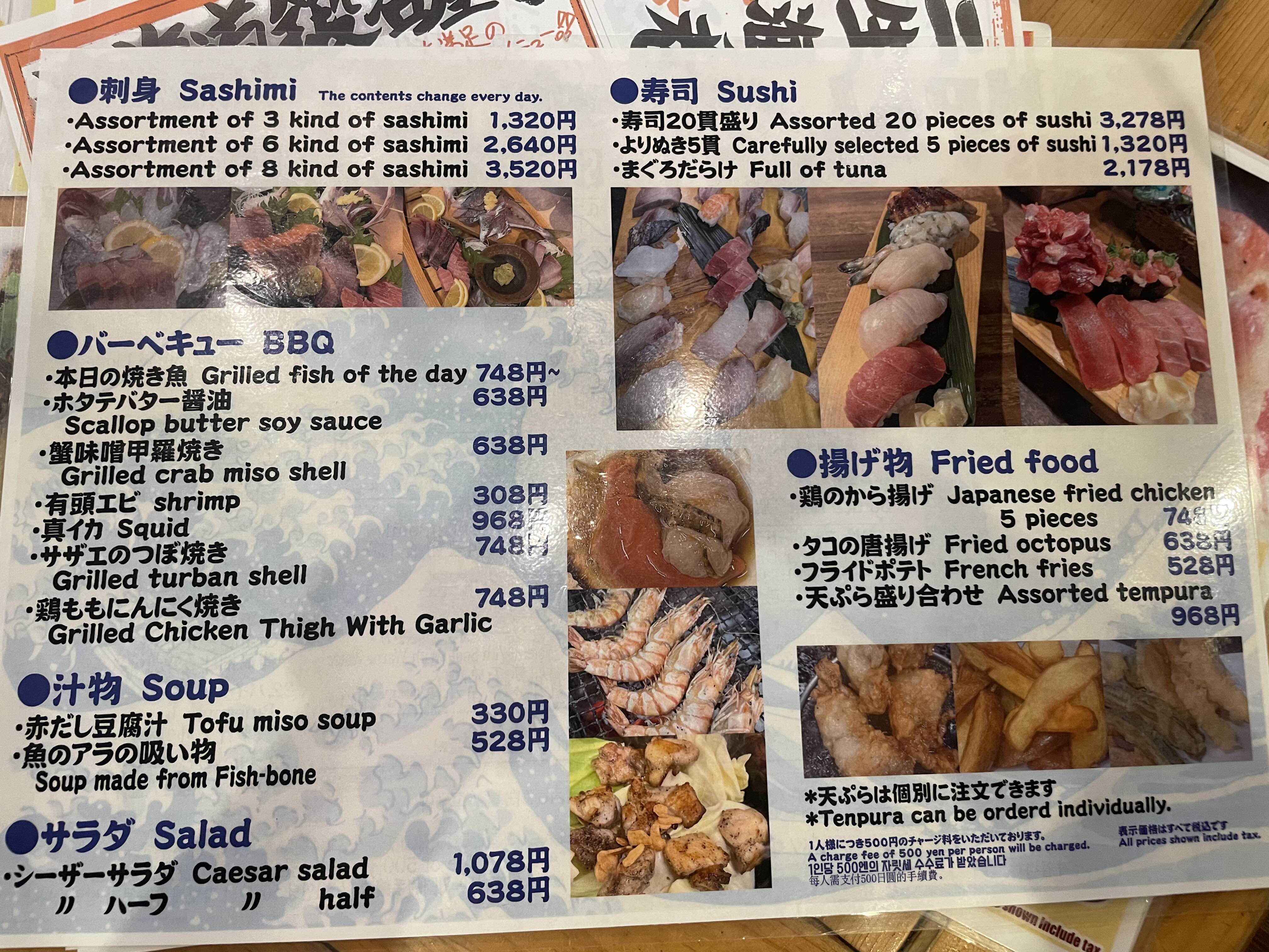 6종 모듬회, 참치 초밥, 가라아게를 주문했고 나마비루 작은거 2잔 까지 해서 7,500엔 나왔다.